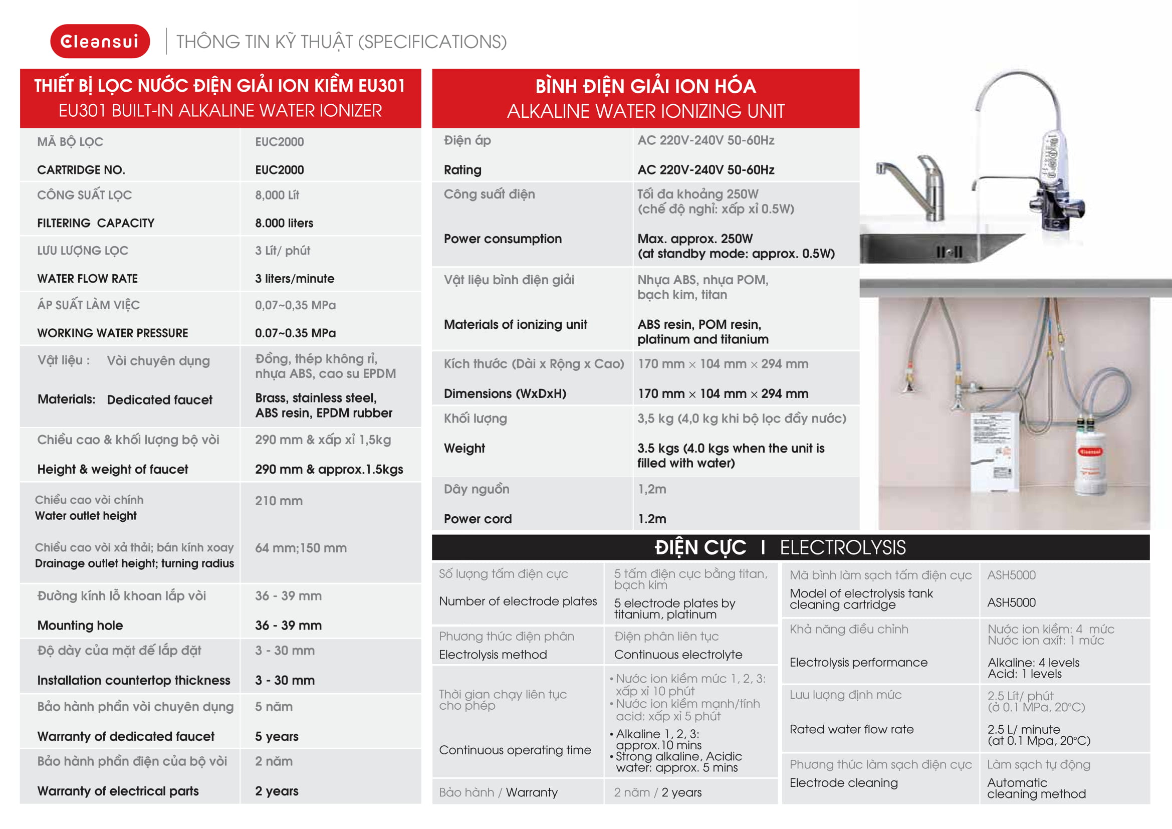 Thiết bị lọc nước điện giải tạo nước ion kiềm EU301